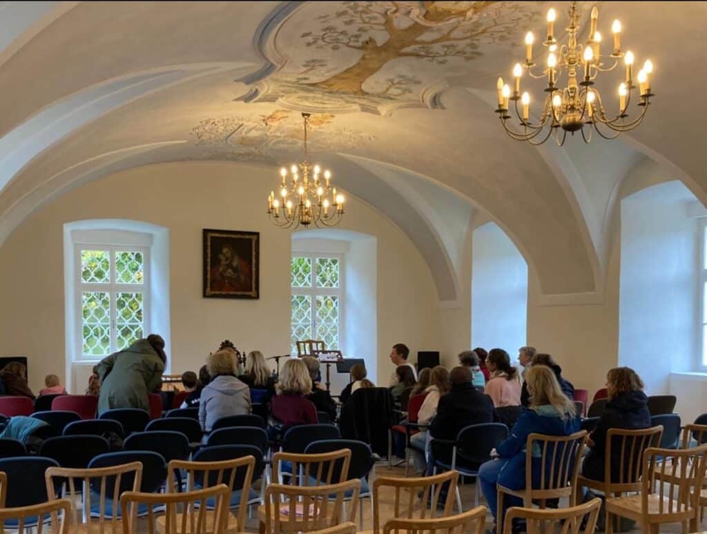 • Nach der Messe verbleiben sie in der Bibliothek der Dorfpension für die Hausgäste.